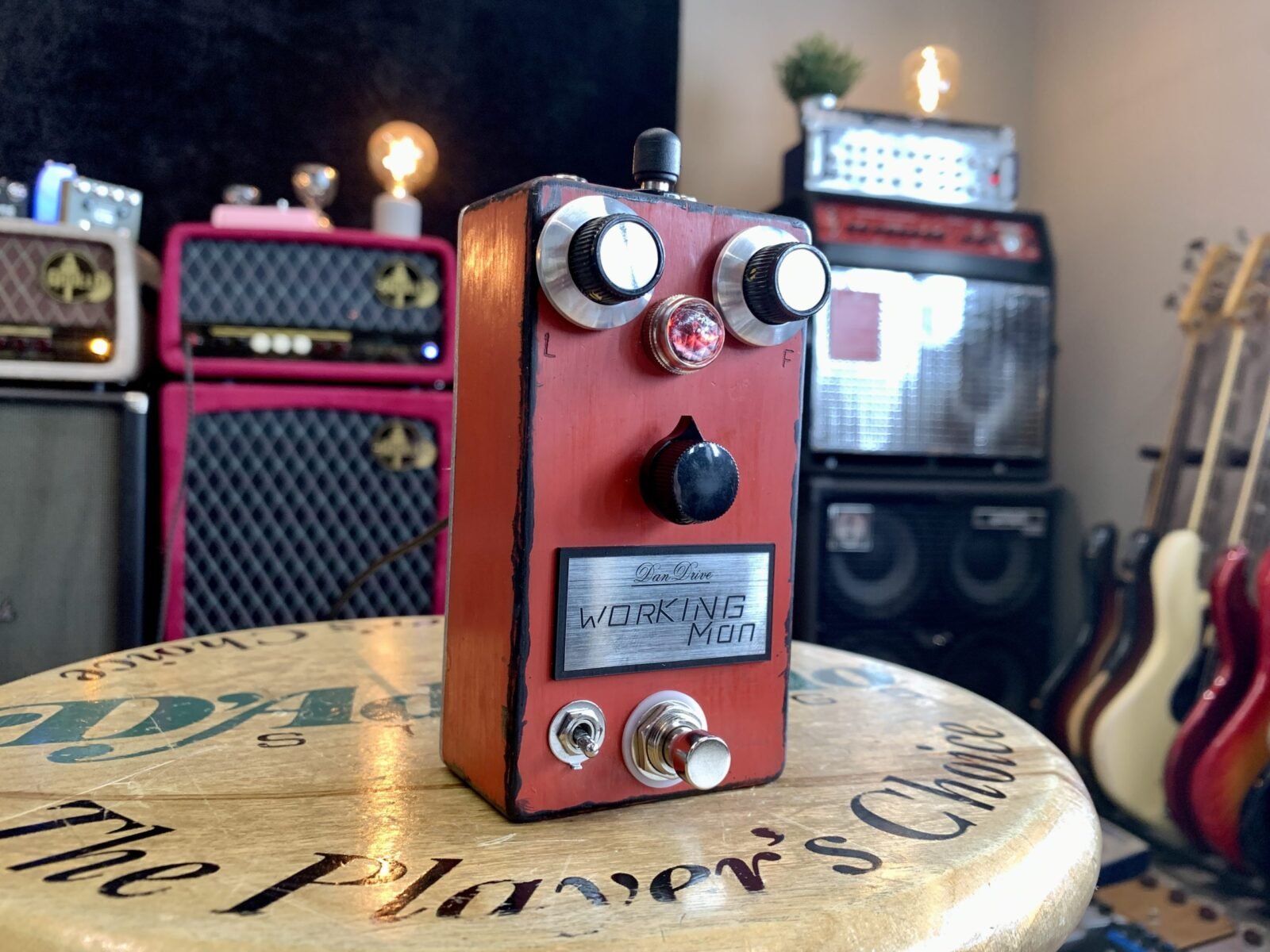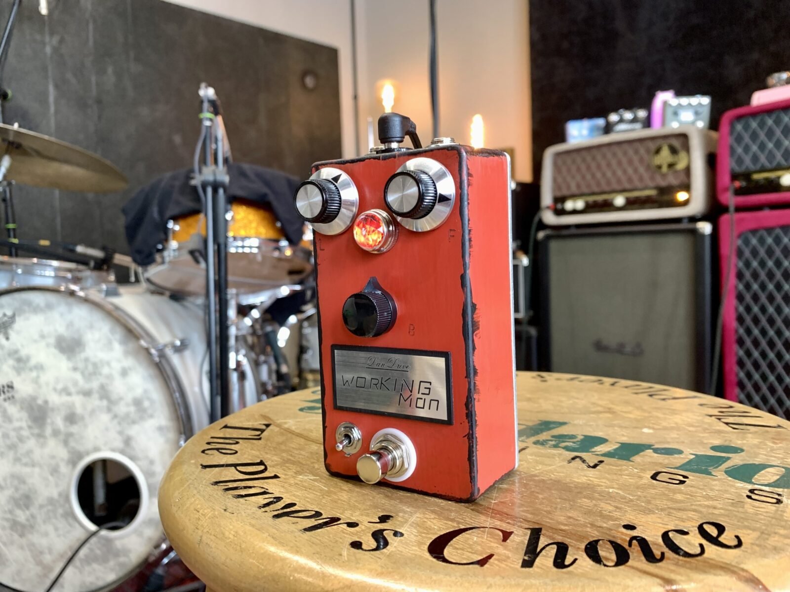 Owen pidió un fuzz que funcione como él necesita. No quería muchas opciones de ajuste, solo las cosas importantes como volumen, fuzz y una pote de bias. Para tener un poco más de flexibilidad tonal, agregamos un interruptor que cambia entre un transistor BC109c y un BC183C. El BC183c cambia el rango medio de una forma que a OWEN le encanta. El fuzz WORKING MAN es el único fuzz en la línea de Dan Drive con el famoso transistor BC109c. La señal de salida es al estilo clásico.