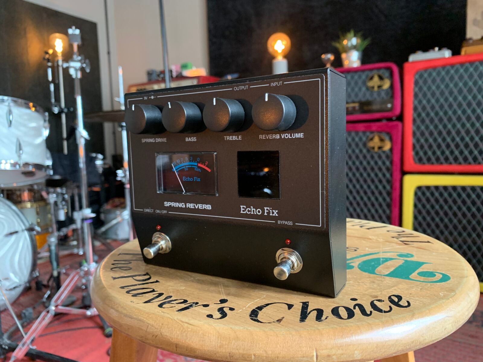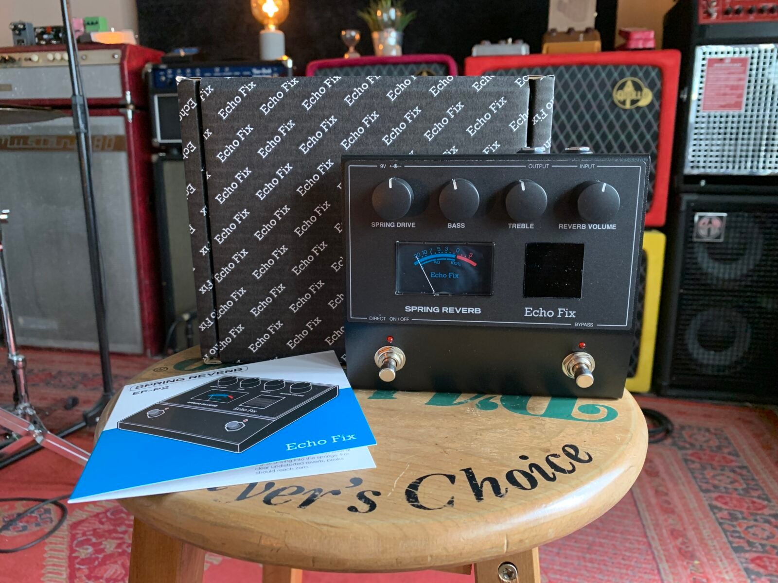 The Echo Fix EF-P2 is a real Spring Reverb pedal that packs a huge sound into a small enclosure. The EF-P2 features a three-spring reverb tank, adjustable Spring Drive, Bass / Treble EQ controls, and Reverb Volume control. With a footswitch for reverb bypass and also a direct signal mute footswitch, the EF-P2 can also be used as an outboard effect in recording studios. The EF-P2 can accept audio signal from synths and other audio devices, not just guitar.