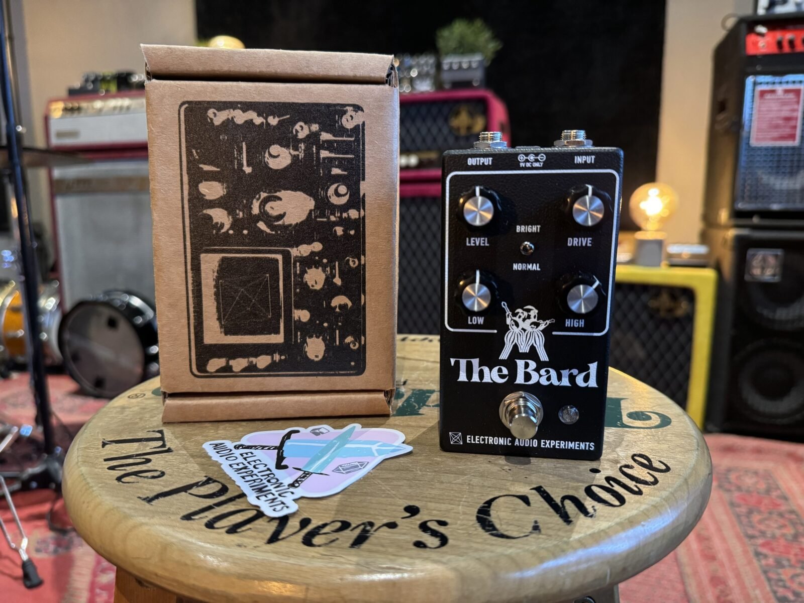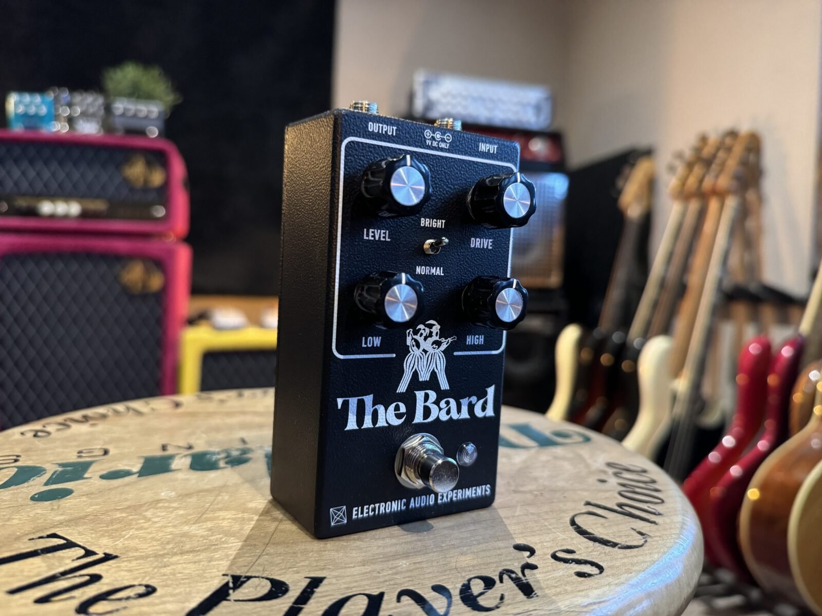 El circuito del Bard se asemeja a un amplificador americano clásico de los años 60 reimaginado con amplificadores operacionales en lugar de válvulas. Los tonos limpios son claros y brillantes, con una suave caída en el rango medio gracias al tone stack pasivo. El aumento de Drive proporciona sonidos de ganancia media con un borde vidrioso, especialmente cuando el interruptor Bright está activo. En los ajustes más altos de Drive, los amplificadores operacionales distorsionan de una manera que no es “como una válvula”, un sello distintivo de los amplificadores originales. El tone stack está situado antes de la etapa de ganancia primaria y puede enfatizar texturas específicas dentro del sonido overdriven. El Bard es un intérprete versátil que sin esfuerzo atravesará entre estilos tradicionales y angulares.