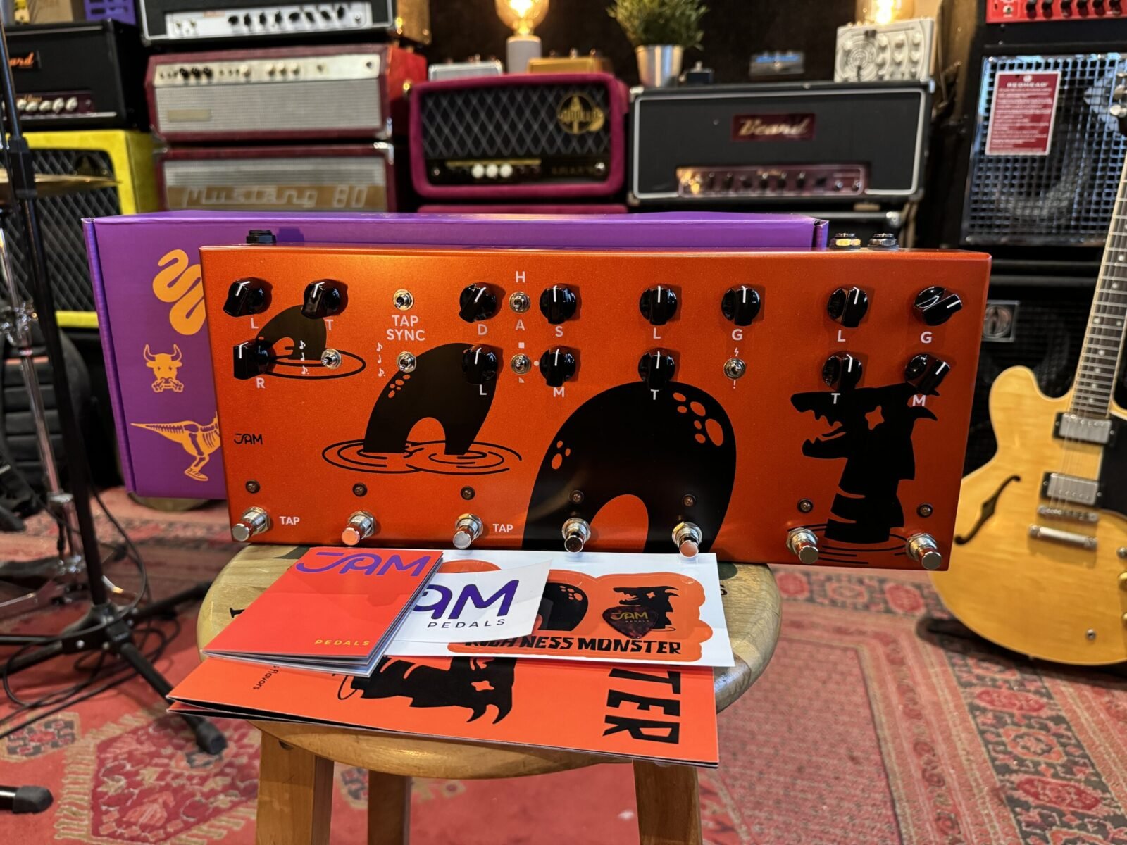Una característica única e innovadora del Kochness Monster es la capacidad de sincronizar el Tap Tempo del Delay Llama con el Harmonious Monk, lo que permite controlar ambas unidades con un solo toque. ¡Experimenta con las configuraciones de subdivisión mientras están sincronizadas para crear texturas rítmicas de otro mundo!