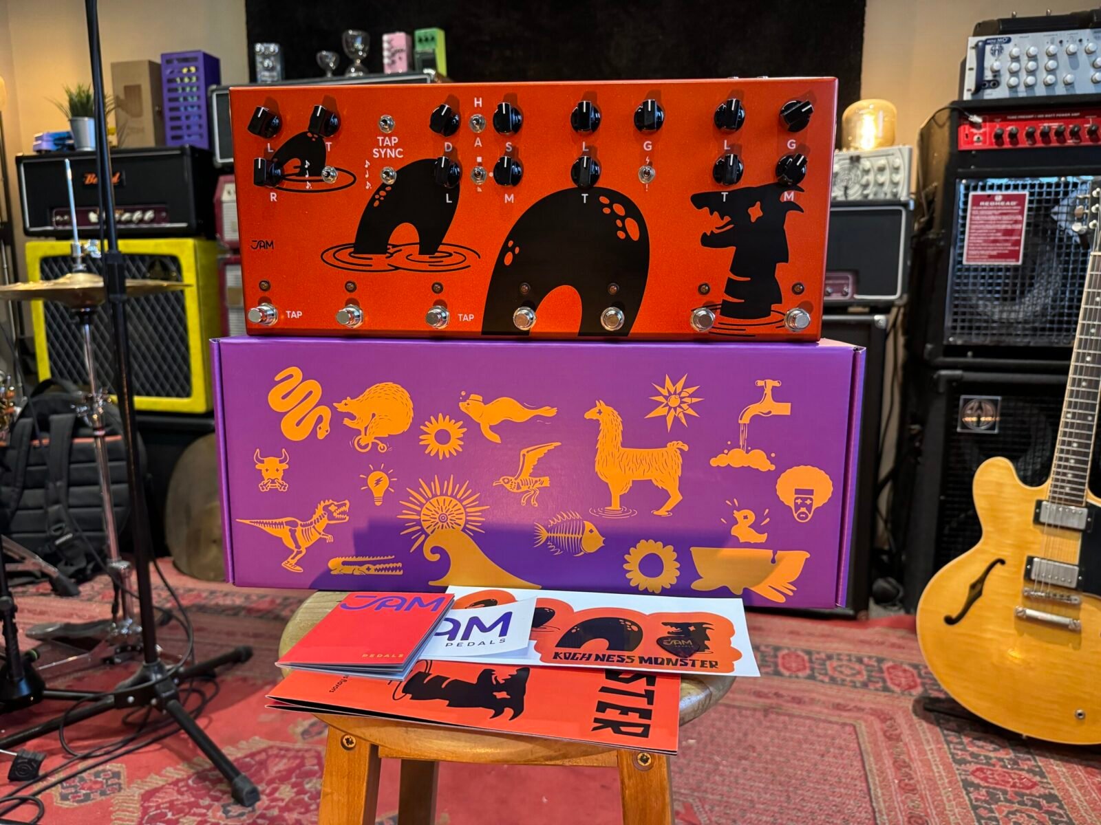 El Kochness Monster es el recurso definitivo de Greg para llevar a cualquier parte, diseñado para facilitar el transporte y equipado con el conjunto esencial de efectos para que Greg pueda afrontar cómodamente cualquier concierto o sesión.