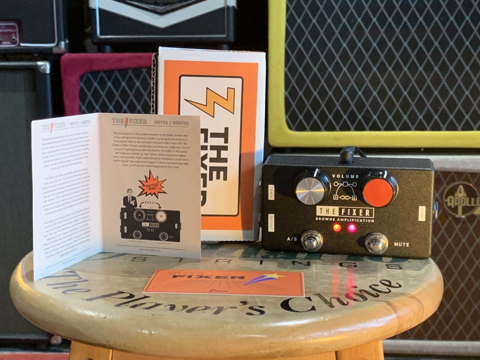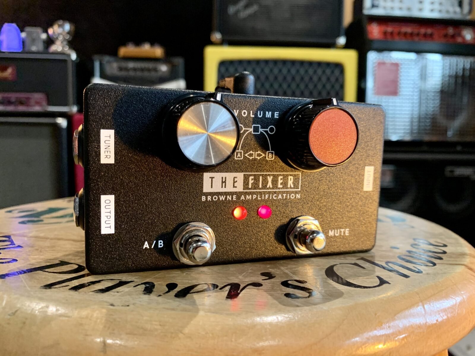 Después de años en la carretera como técnico para algunos de los mejores guitarristas, Dave se dio cuenta de la necesidad de un pedal que le permitiera cambiar de guitarra sin cambios drásticos en el volumen y el tono. Es por eso que THE FIXER tiene dos “boosts” idénticos. Estos “boosts” no solo ayudan a compensar la ligera pérdida de ganancia de nuestro “buffer” favorito, sino que también brindan la opción de agregar un poco más de ganancia a nuestra señal si lo deseáramos. Podemos establecer una ganancia ideal con nuestra guitarra de humbucker favorita, luego presionamos el interruptor de silencio, cogemos una Strato Vintage, aumentamos la ganancia para que coincida con la guitarra de alto ganancia y seguimos tocando.