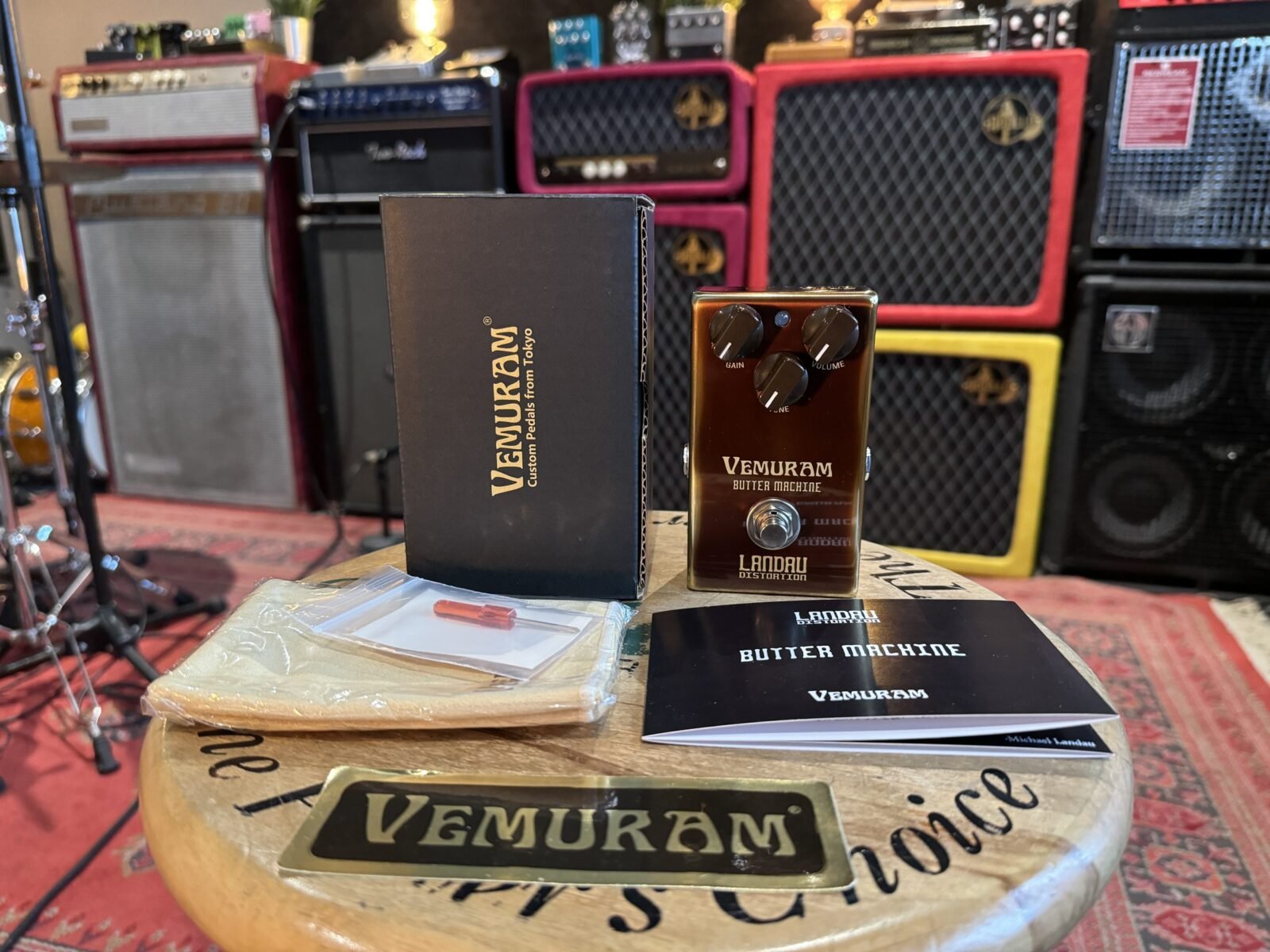 “I’ve been using Vemuram pedals for over 10 years starting with the Jan Ray Overdrive. And over the years, Daiya and Shingo have become good friends during my many tours in Japan. The Vemuram pedals have always been in a class of their own in my opinion. All of their pedals have that big, bold Vemuram sound. And the company has the highest level of integrity regarding the way the pedals are designed and built. In the past I’ve used an Ibanez SD9 as my high gain pedal, it was my main distortion pedal for many years, but I’ve always had a bit of a love-hate relationship with the pedal. It can be shrill and overly compressed if it’s not dialed in just right… So a couple of years ago I asked Daiya if he could design a distortion pedal that had the positive sonic qualities of the SD9, but without the overly compressed, high-end harshness. Daiya and I have spent many months listening to several prototypes that he designed, experimenting with them and making improvements. We used the SD9 as a starting point but of course this new Vemuram distortion pedal is a higher grade unit with many improvements. Besides the Gain, Volume and Tone knobs, there are two trim pots that let you fine tune this pedal in a unique way. The “Sparkle” trim pot is a ‘Peaking’ type of boost centered around 6K that allows you to dial in the ‘Crunch’ of the high end. The “Low-Mid” trim pot allows you to add the perfect amount of bottom end. I used one of the prototypes on tour in 2022 and 2023, and also in the studio many times over the last year. In other words, this pedal has definitely been real time tested. The final version of this new Vemuram distortion pedal has a perfectly open, natural feeling overdrive. It has gain and sustain for days… yet it stays clear, punchy and solid when you roll the volume back on your guitar. It’s very easy to dial in the perfect amount of overdrive with this pedal while keeping all of the musicality intact. Vemuram has designed the best distortion pedal that I have ever played through. We named it the “Butter Machine”, and if you play through one you’ll know why. It’s a very satisfying sonic experience. Cheers to Vemuram, and to all of the guitar rulers of the universe!” – Michael