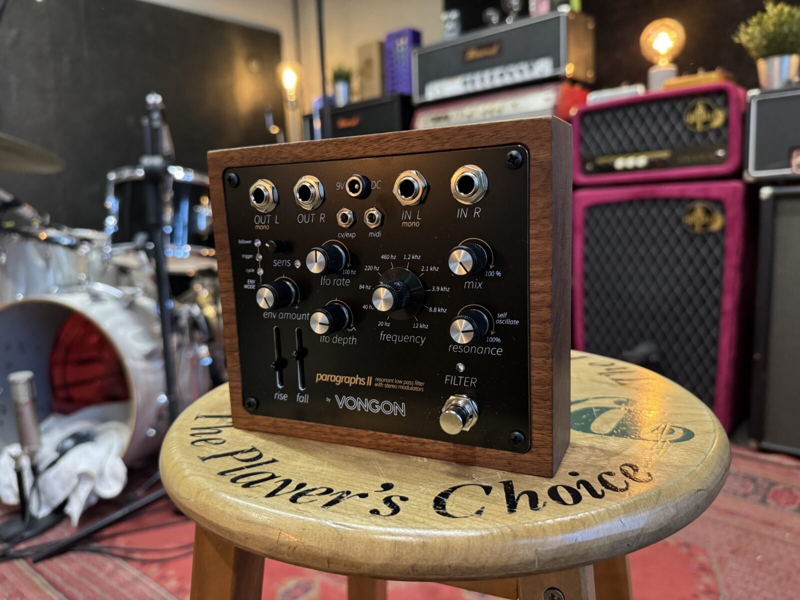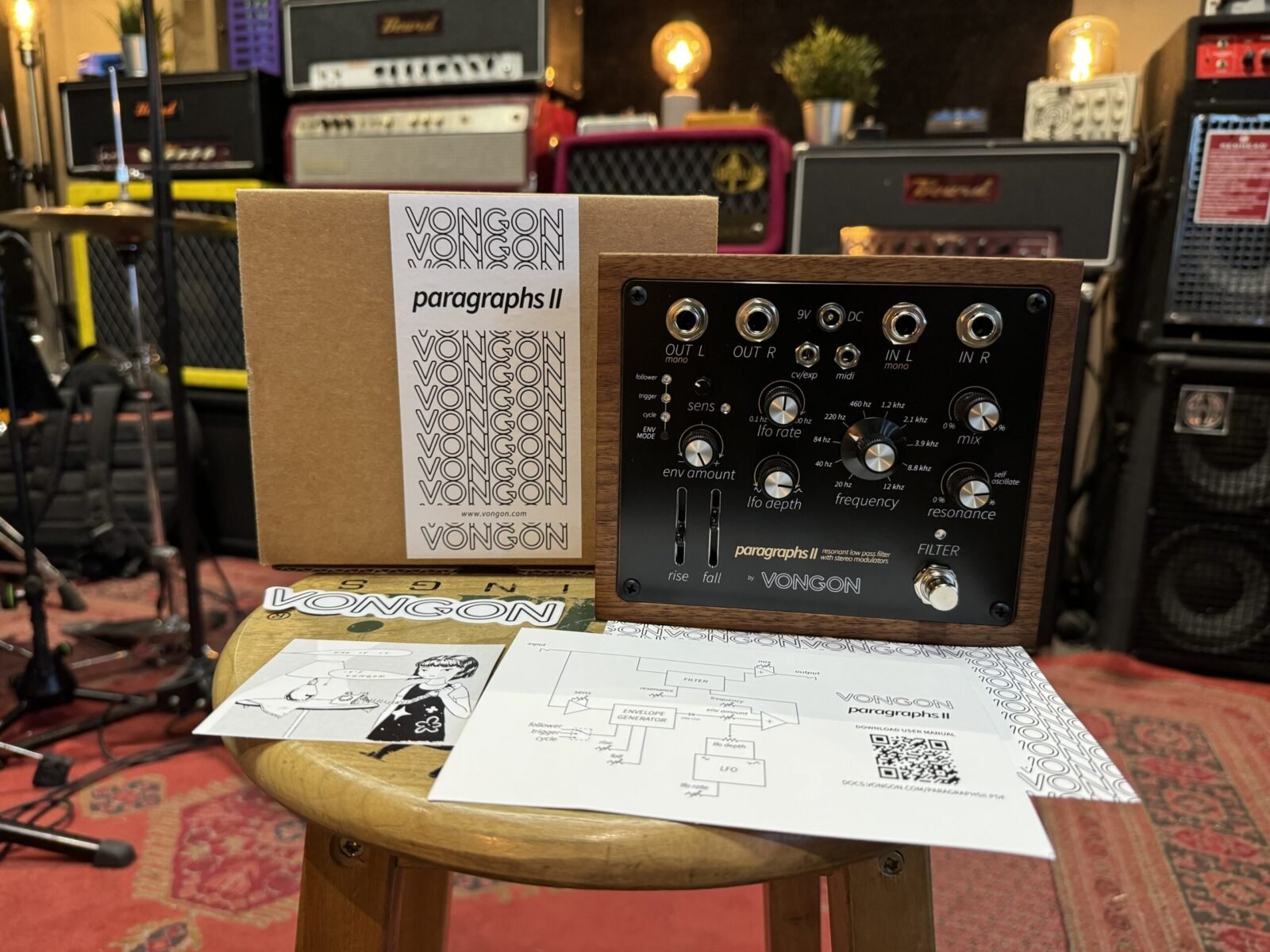 PARAGRAPHS II is the latest generation of VONGON’s four-pole resonant low-pass filter effect. It now features stereo inputs and outputs, with a focus on modulation functions that respond to your playing dynamics and add stereo depth.