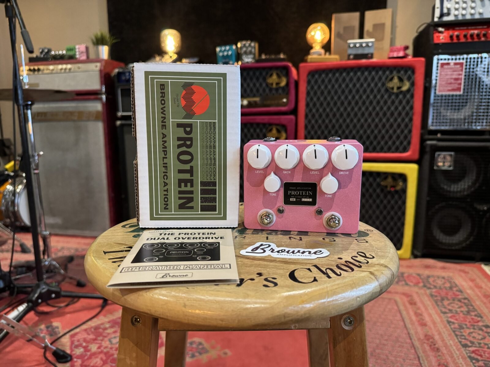 El Protein 2 in 1 Overdrive surge de la colaboración entre David Brown y el guitarrista/productor Adam Sniegowski. Después de años de carretera, grabaciones en estudios y la incertidumbre de la inconsistencia de los amplificadores que iba encontrando en cada situación, Adam acudió a Dave con la intención de crear un overdrive dual que sonara genial con cualquier amplificador que encontrara. Comenzaron con dos modelos que les encantaban a nivel individual pero también usándolos en serie, aunque había algunos problemas inherentes. Dave se dispuso a solucionar esos problemas sin perder de vista el alma de los originales.