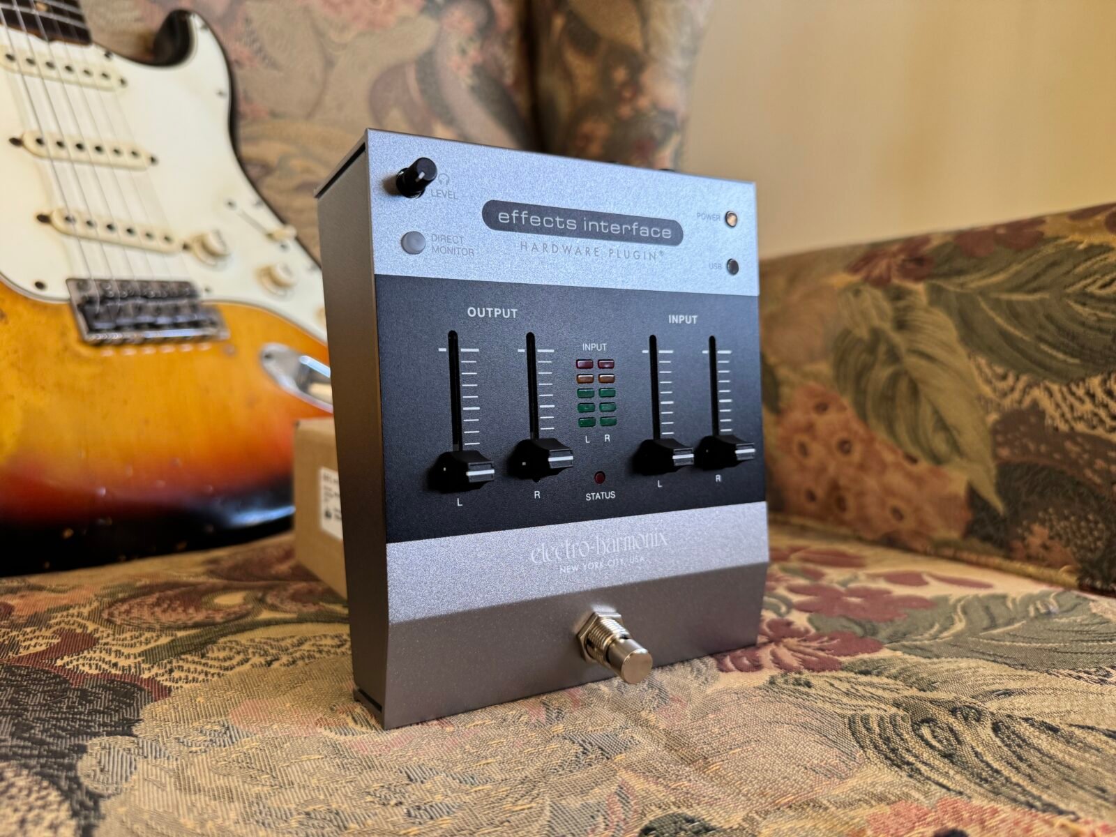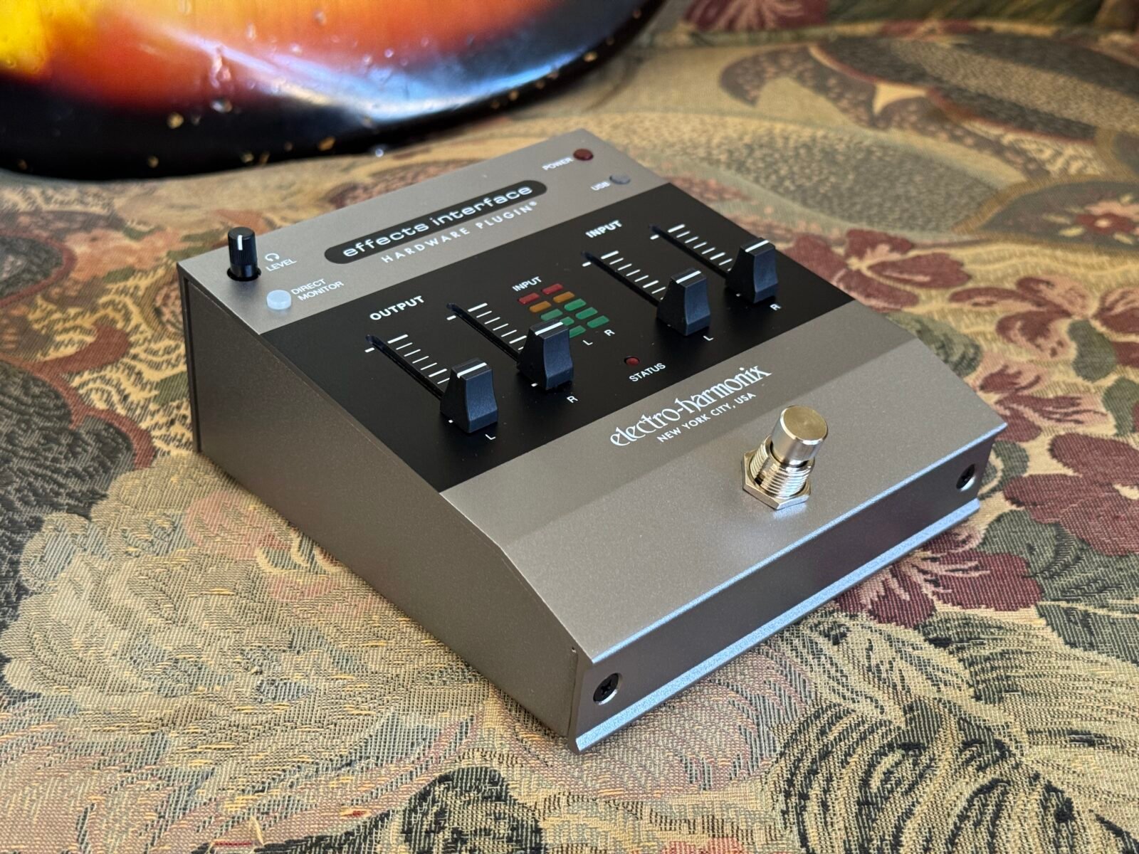 El Electro-Harmonix Effects Interface Hardware Plugin® es un dispositivo pensado para algo muy concreto: que usar pedales y hardware real con tu DAW sea tan fácil como insertar un plugin, y a la vez poder sacar tus plugins del ordenador para usarlos dentro de tu rig de guitarra. Todo con una conexión USB-C, sin tener que añadir convertidores, DI boxes o reamp boxes externas para que el nivel y el flujo de señal encajen.