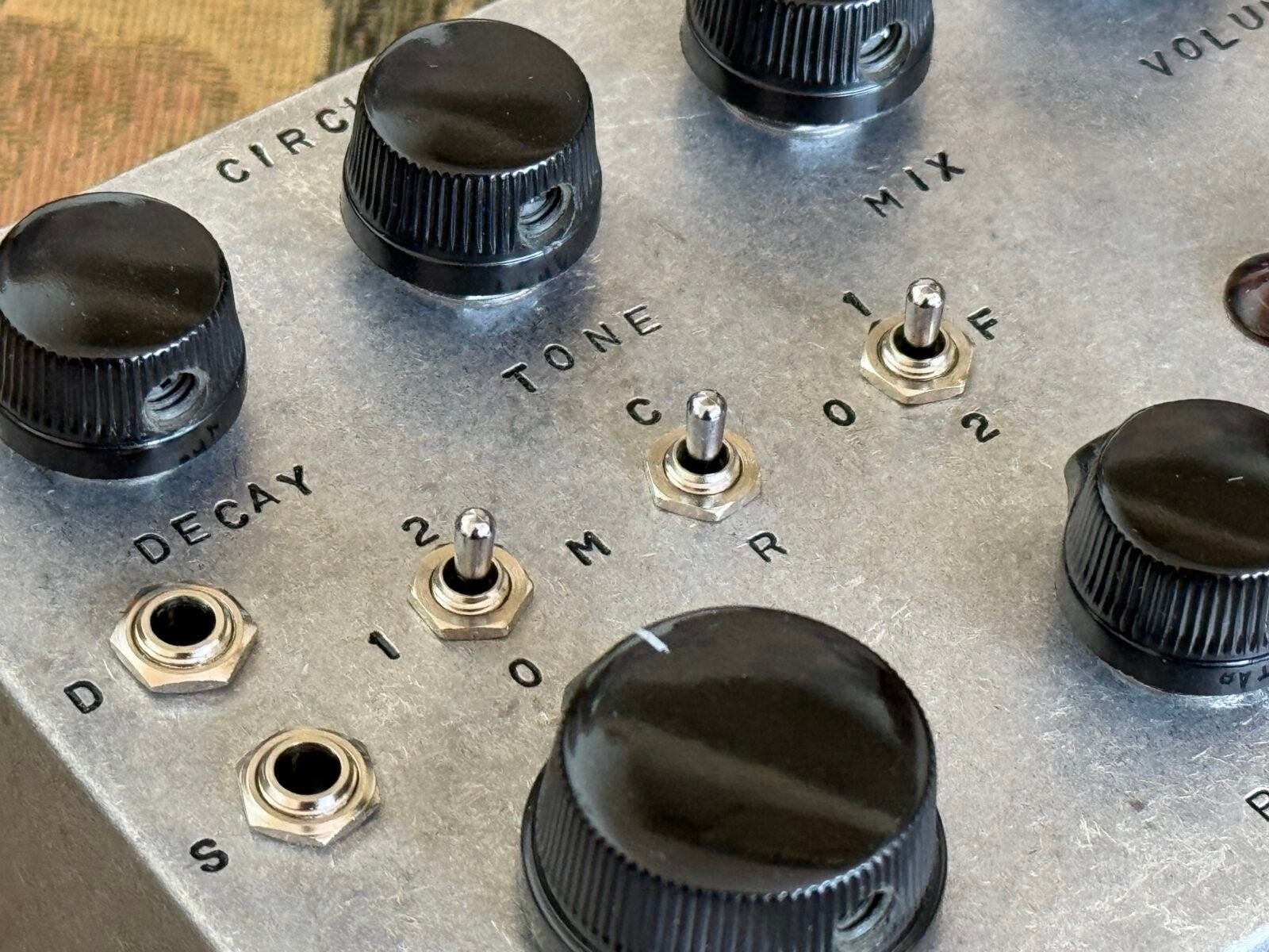 Aquí no hay presets: todos los controles son totalmente variables y van directos al circuito. Y sí: como buena reverb analógica basada en BBD, hay ruido, especialmente con tiempos largos, TONE alto y MIX muy wet. También puede cantar y entrar en auto-oscilación si llevas el DECAY al límite: si ocurre, puedes tocar con ello, bajar feedback o usar modulación para domarlo.