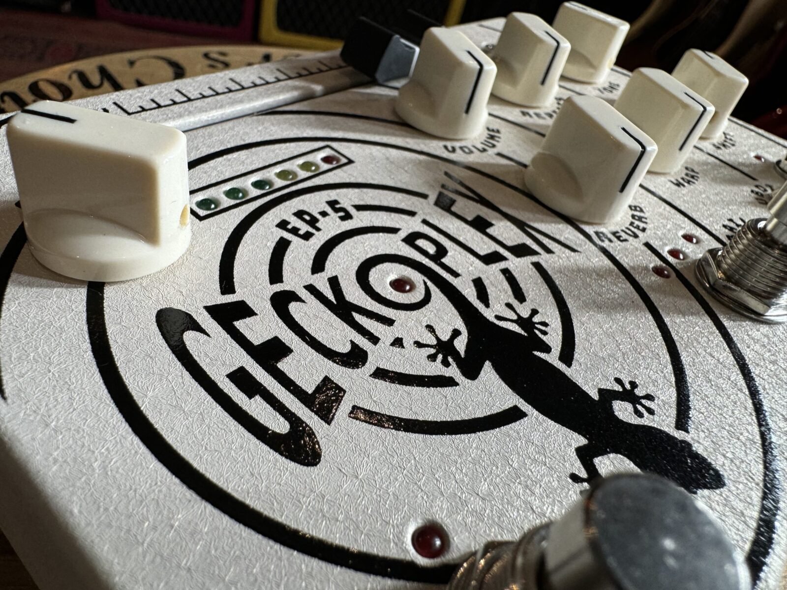 Gecko Pedals nació de una apuesta (¿quizás un desafío?) entre dos compañeros de banda en 2007. El primer compañero, el guitarrista principal, era un gran admirador de un eco de cinta de la década de 1960 fabricado por Maestro llamado Echoplex, que aún es una leyenda en algunos círculos. Lo poseía y lo usaba en la banda, y todos quedaban encantados con los sonidos alucinantes que creaba con él. Sin embargo, tenía algunos problemas. Era un gigante, pesado, ladrillo electro-mecánico lleno de motores y poleas y cosas que zumbaban y chirriaban y hacían ruido. Cuando algo salía mal, la cantidad de piezas de repuesto y personas capaces de repararlo eran escasas.