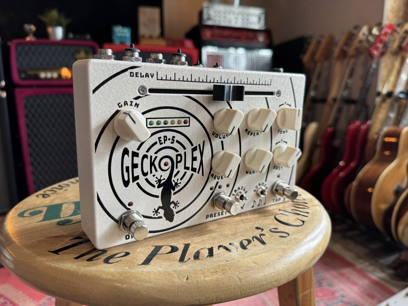 Lee la reseña de Ed Petterson en la revista American Songwriter aquí: https://americansongwriter.com/gear-review-gecko-pedals-geckoplex-delay/