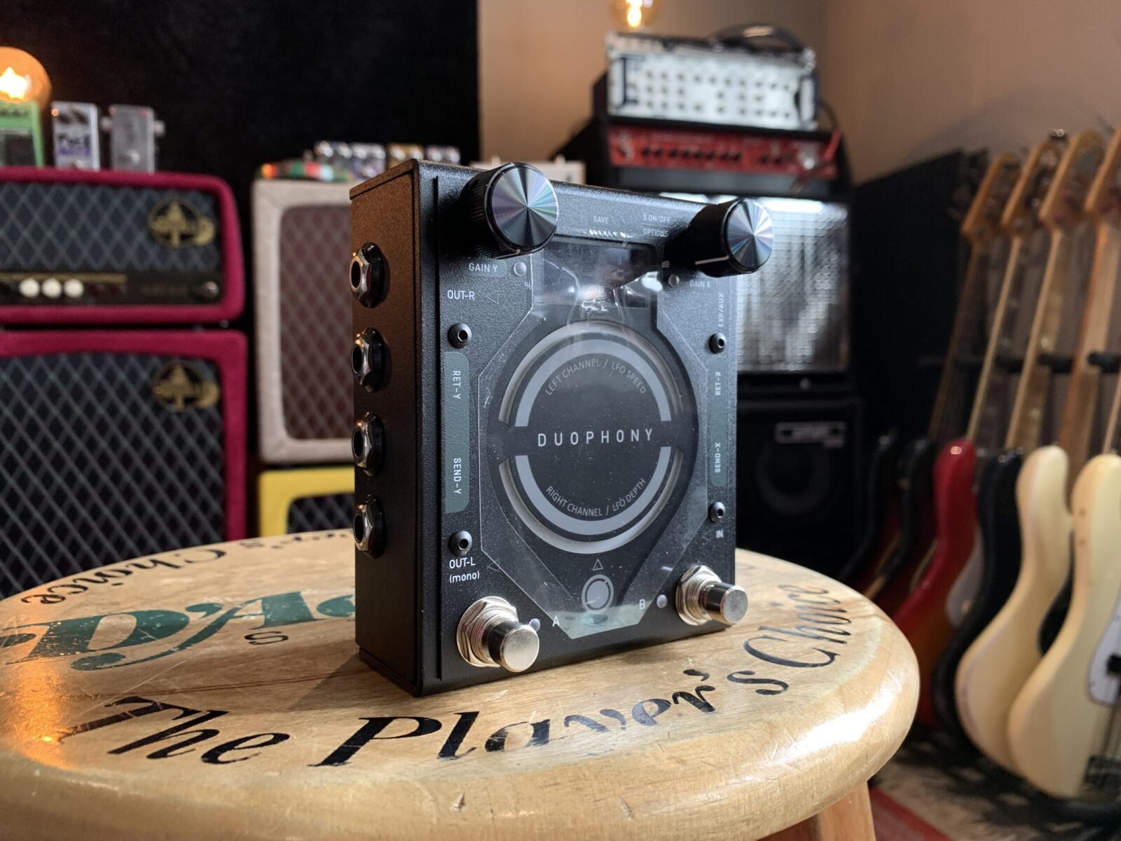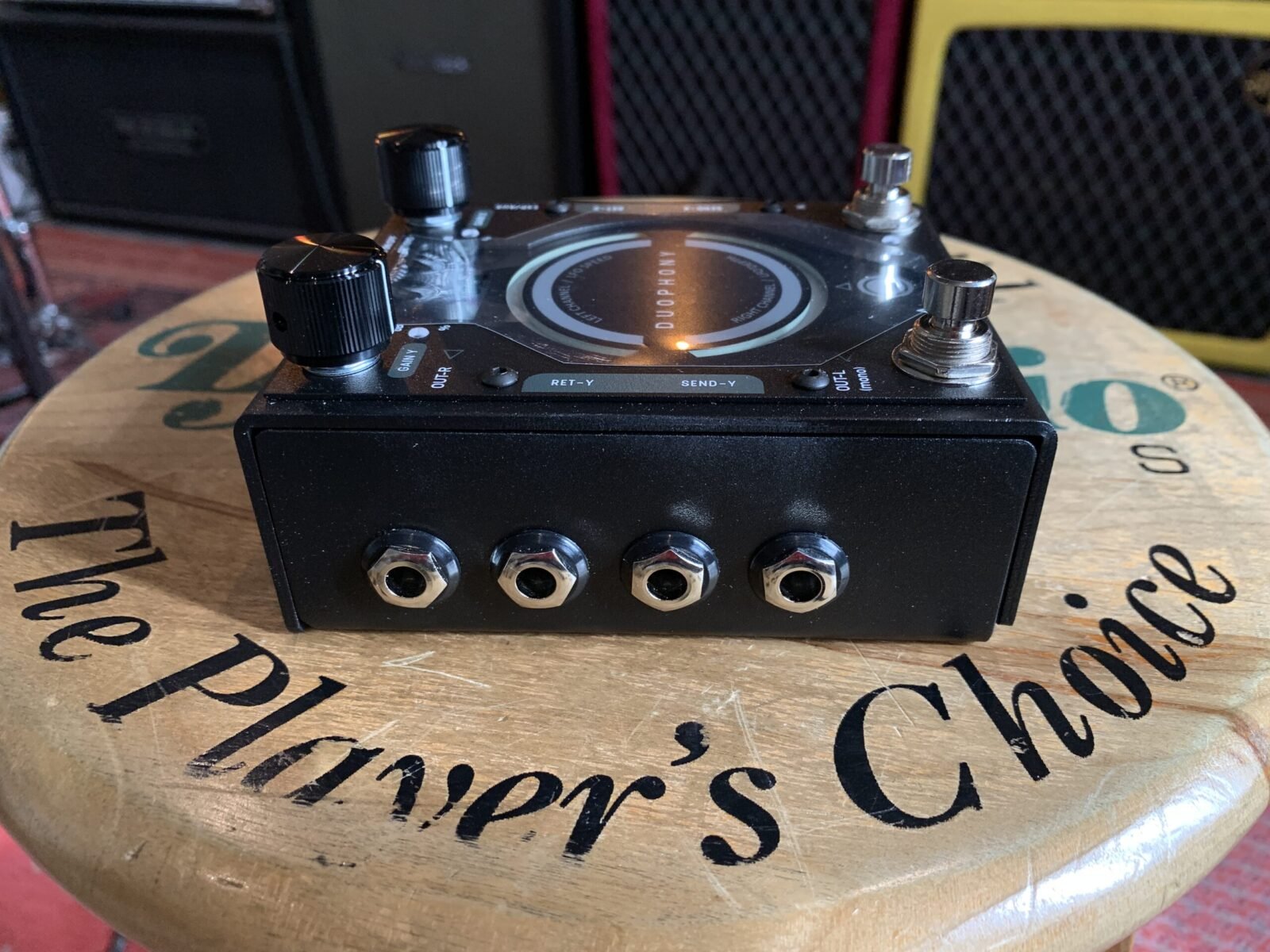 The GFI System Duophony is a mono/stereo parallel blender pedal of unparalleled depth and flexibility, allowing the user to blend two separate signal chains of any kind in myriad different ways.Its rotary touch slider mix control is both intuitive and eye catching, requiring but a swipe of the finger to tweak the blend ratio of Duophony’s X and Y loops.