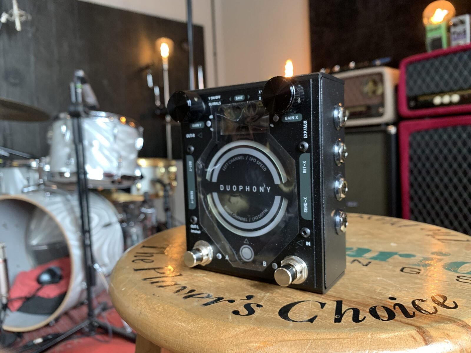 Duophony offers three parallel blend modes for its loops, two routing options (parallel or series), and 16 presets organized into eight banks.Besides the touch slider on the face of the pedal, each of Duophony’s knobs is also a button, allowing quick access to any parameter while keeping the user interface clean and simple.