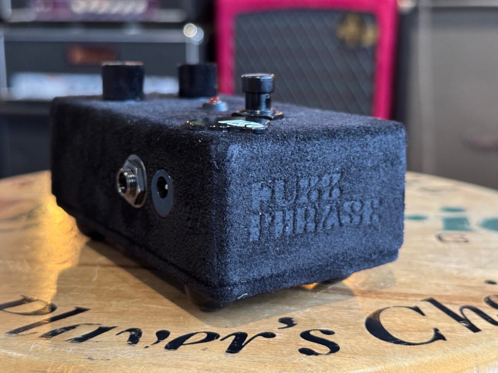 The Black Fuzz Phrase LTD houses NOS Philips OC44 black glass transistors—the holy grail of germanium components—in a hand-wired, turret-built circuit wrapped in luxury suede. This isn’t just a fuzz; it’s a time capsule of 1969’s finest tonal secrets, resurrected for the modern player.