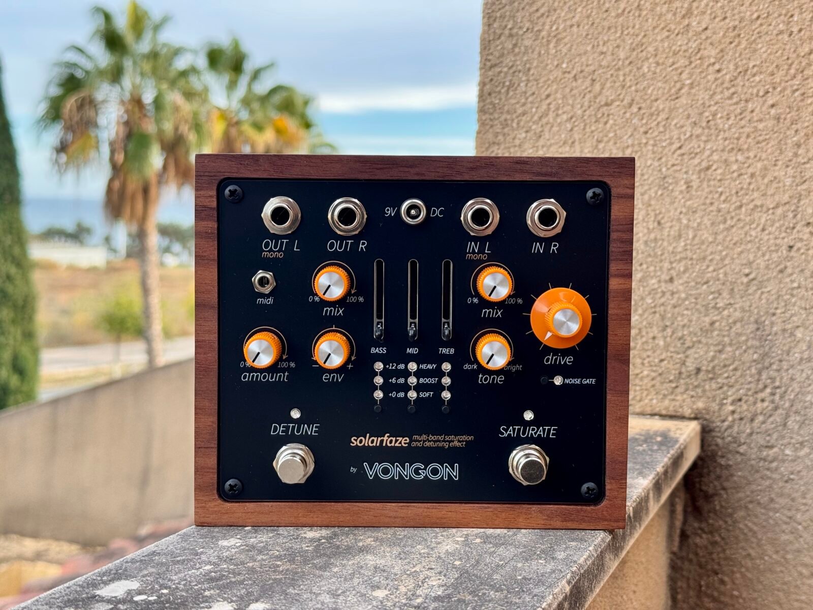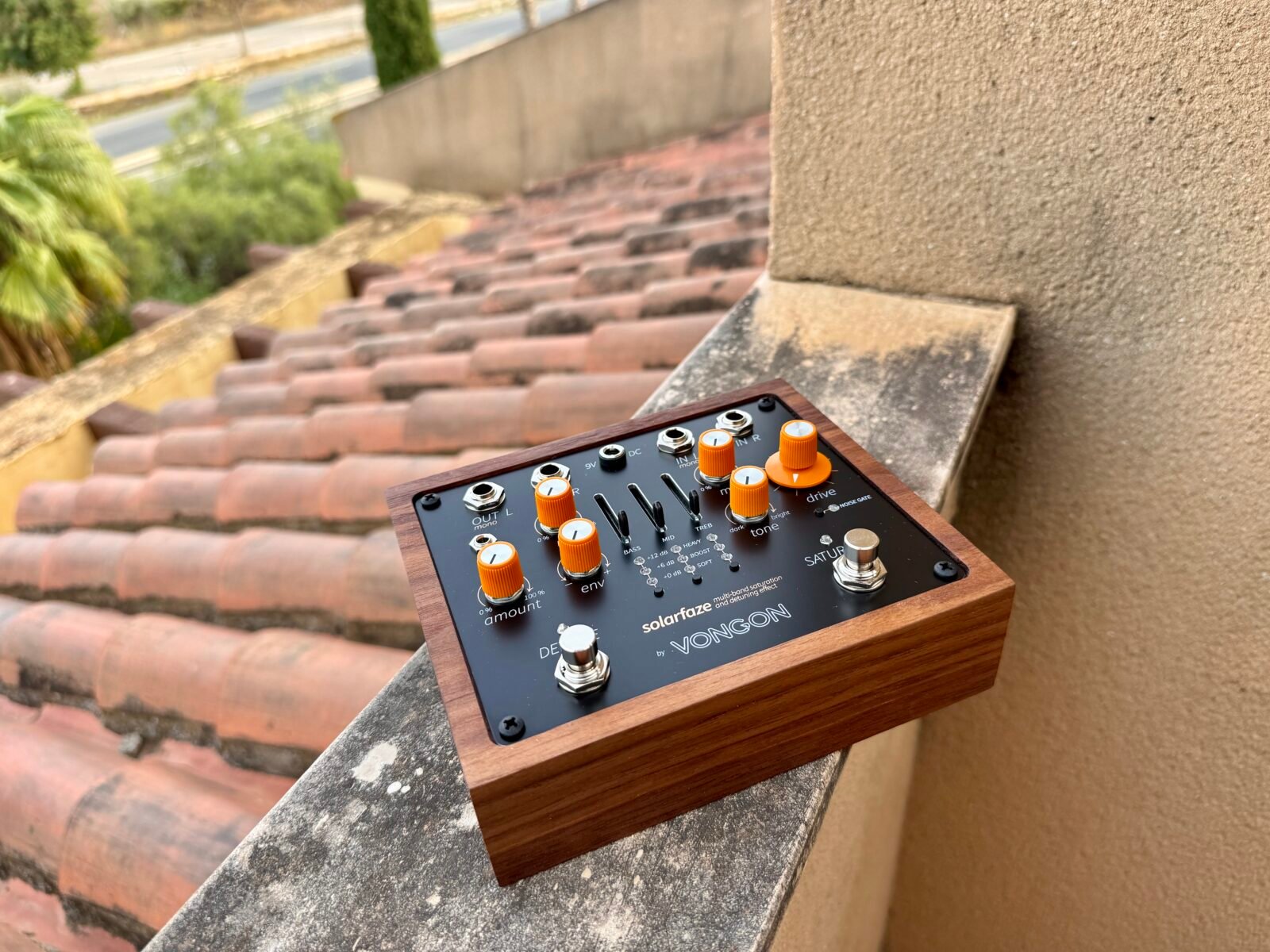 Solarfaze es un procesador de audio estéreo que transporta tu sonido a través de un paisaje bañado por el sol de fase y tono. Combina saturación multibanda con un chorus de detune controlado por envolvente, creando calidez, brillo y dimensión estéreo. Alojado en una única pieza de madera de nogal mecanizada y pulida a mano, este pedal boutique ofrece un control sin precedentes sobre el espectro tonal completo.