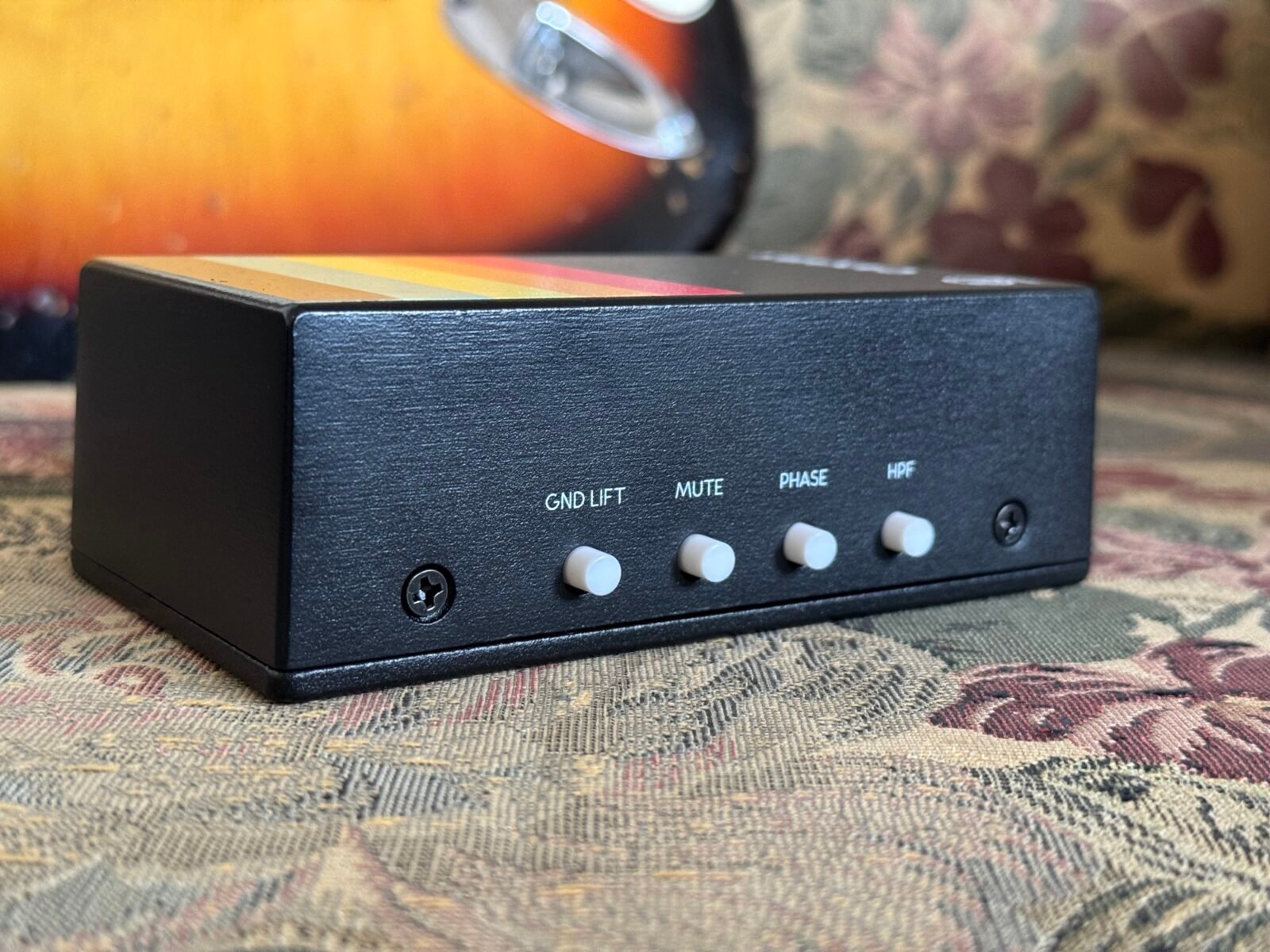 Su punto clave es un transformador personalizado que convierte señales a nivel de línea (salida de interfaz, preamp, etc.) y las adapta a un formato compatible con el mundo “instrumento”: pedales y entradas de amplificador. En otras palabras, te permite tratar una pista grabada como si la estuvieras tocando en ese momento, pero con la ventaja de poder probar combinaciones infinitas de pedales, amplis, pantallas y cadenas de efectos hasta dar con “esa” textura.